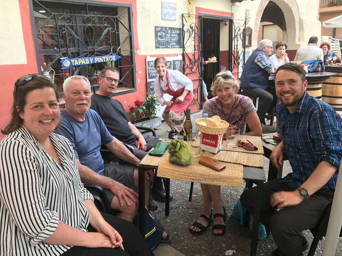 Story #2 – Prince Harry & Meghan Markle’s May 19th royal wedding fell during my Camino, so I was resigned to seeing photos after I got home (since I was happily on a TV fast as a pilgrim!). However, I got lucky that day when I stopped in the bustling town of Viana, seeking out a good café for lunch. I spotted some friendly-looking pilgrims at an outdoor table & asked if I could join them.