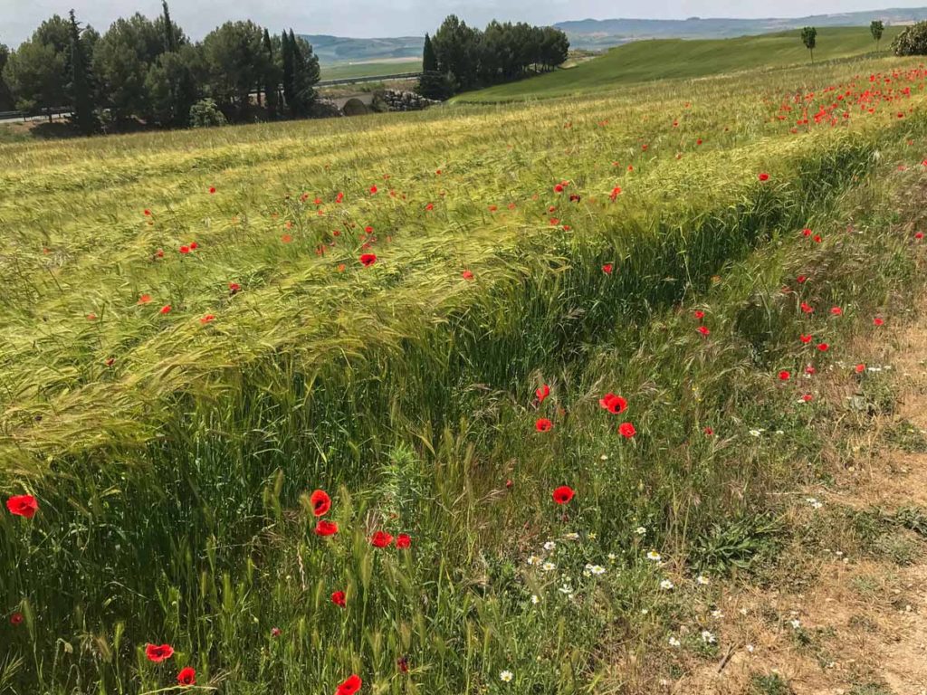 On Camino #1, I walked in the fall when the fields on the Meseta were golden brown. This time, it was a different world. Walking in late spring (May), everything was green & the most amazing array of bright-colored wildflowers – including the luscious red poppies – lined the entire Camino. Without question, my #1 favorite aspect of Camino #2 were the wildflowers!