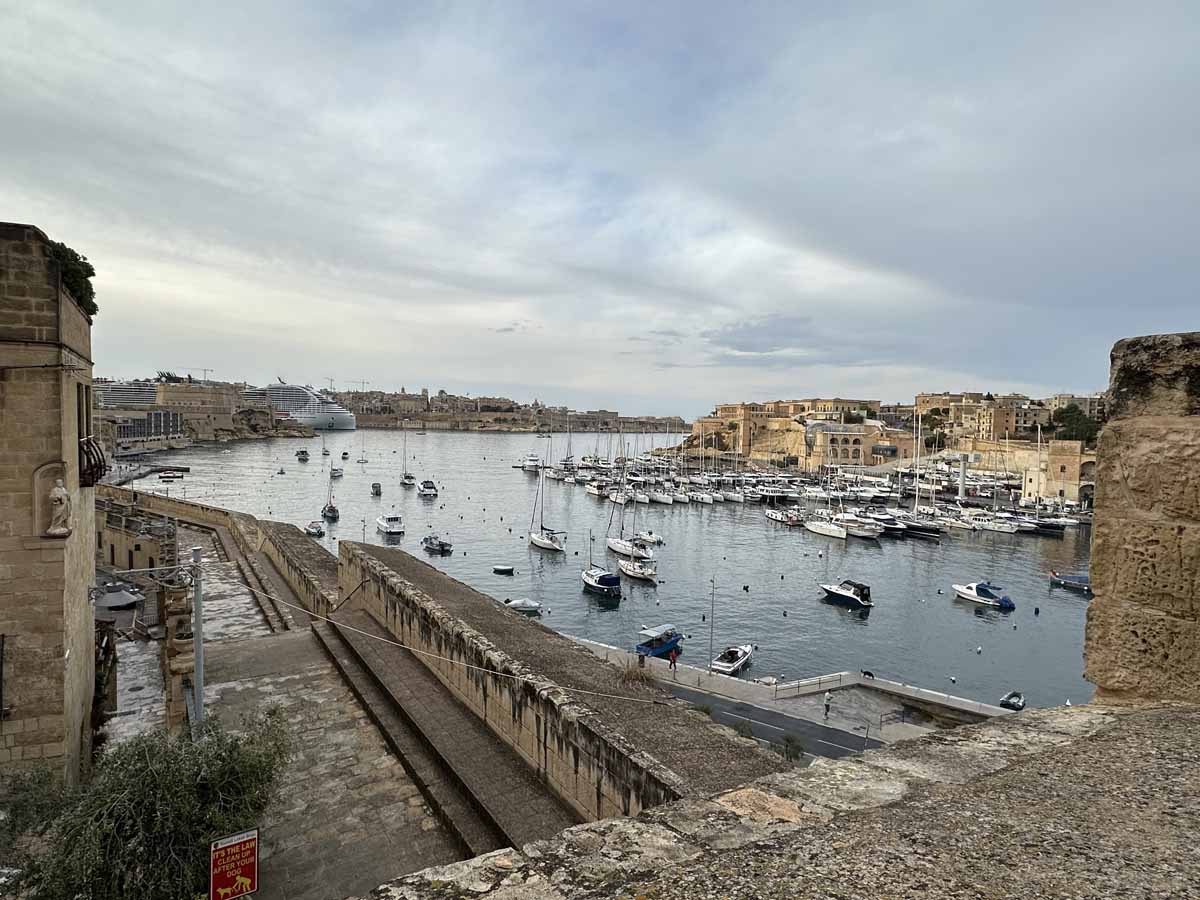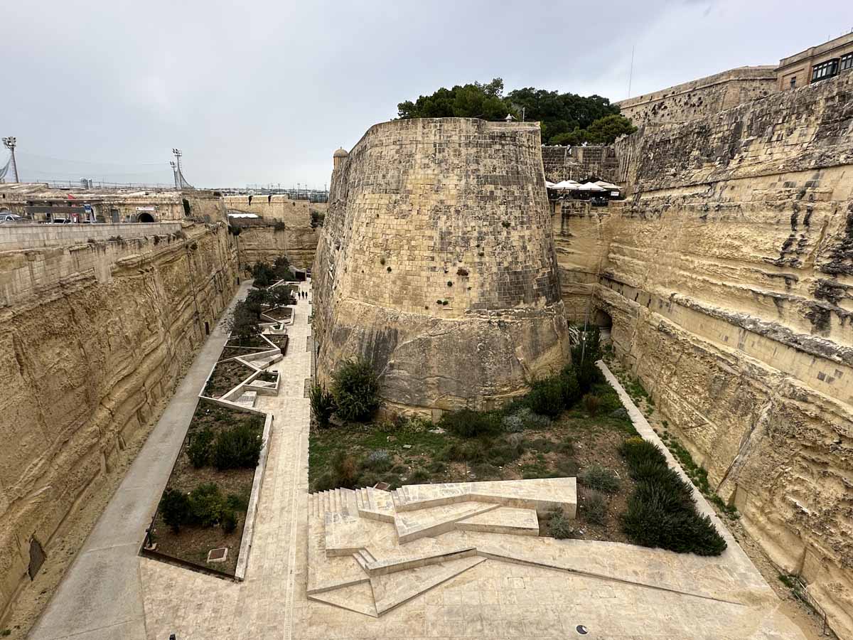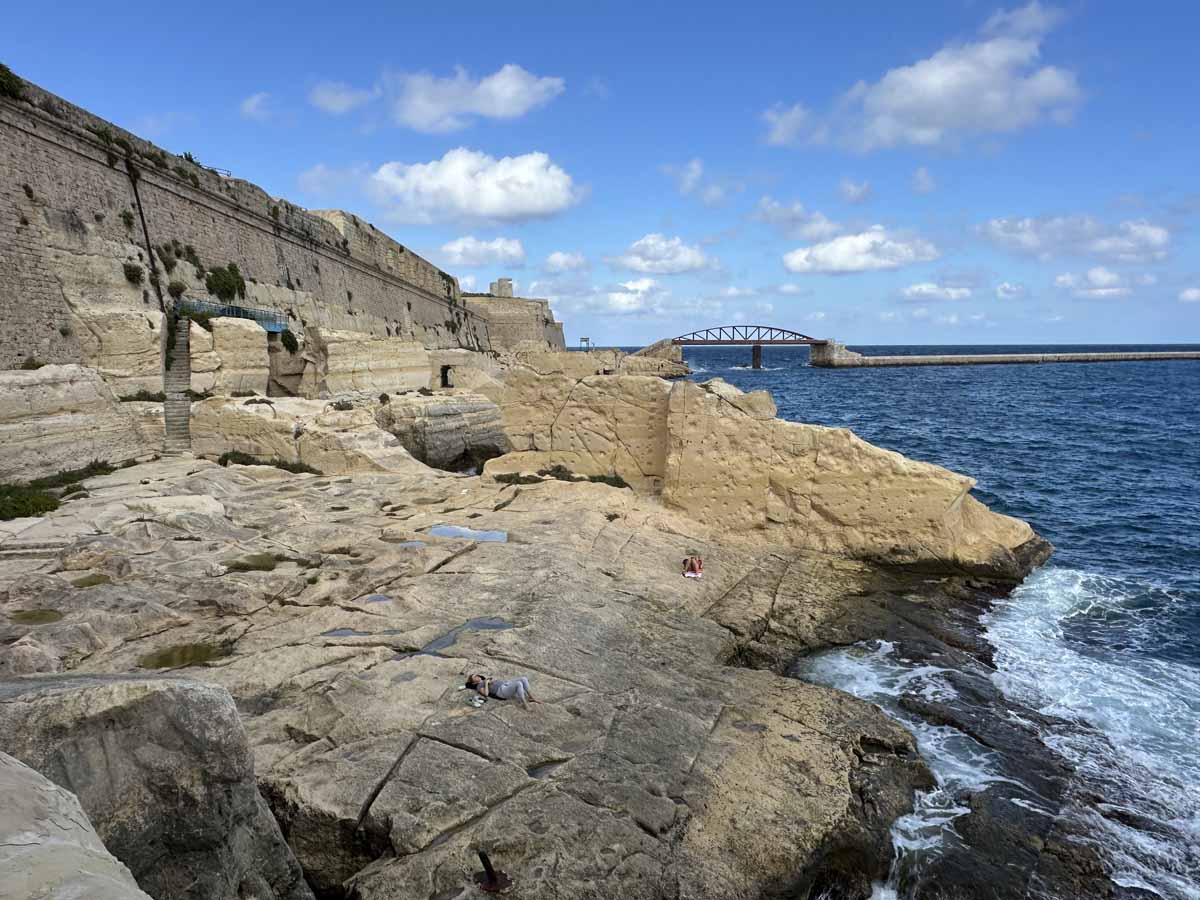 We started the path on the northern side of the peninsula at St. Elmo’s Bay and walked clockwise around Fort St. Elmo, which was sitting high above us. The path ultimately brought us back to the main town near the Lower Barrakka Gardens (overlooking the Grand Harbour).