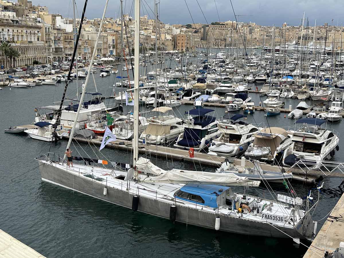 Turns out, the woman’s husband, Timmy Camilleri was one of the sailors in the race – sailing on the Artie III boat (42 ft) with a crew of 10. Timmy’s been sailing since age 17 and has done this race many times. He’s now aged 60 & a local GP doctor in town. His sweet wife was there with her adult kids & grandkids to cheer him on.